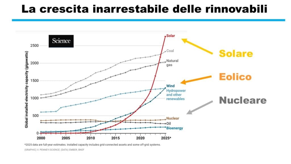 Su resto dell’articolo c’è poco da aggiungere. Non serve essere scienziati, basta guardare il grafico per capire quale sia davvero la crescita impressionante delle rinnovabili.