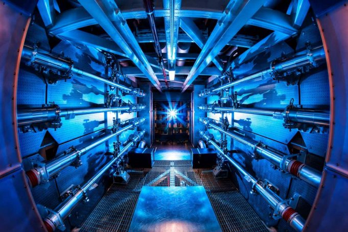 In un edificio della NIF esteso come tre campi di football americano ci sono i laser più potenti del mondo. Gioielli della tecnologia. 192 fasci laser sono stati puntati su una scatoletta d’oro delle dimensioni di una gomma da cancellare. L’oro, irradiato dai laser, ha emesso dei raggi X che hanno colpito una capsula interna di diamante delle dimensioni di un granello di pepe. La capsula conteneva al suo interno una miscela di isotopi dell’idrogeno. L’implosione di questa capsula ha permesso di innescare un processo di fusione nucleare analogo a quello che avviene nelle stelle, quello cioè in cui due atomi si fondono e rilasciano energia.