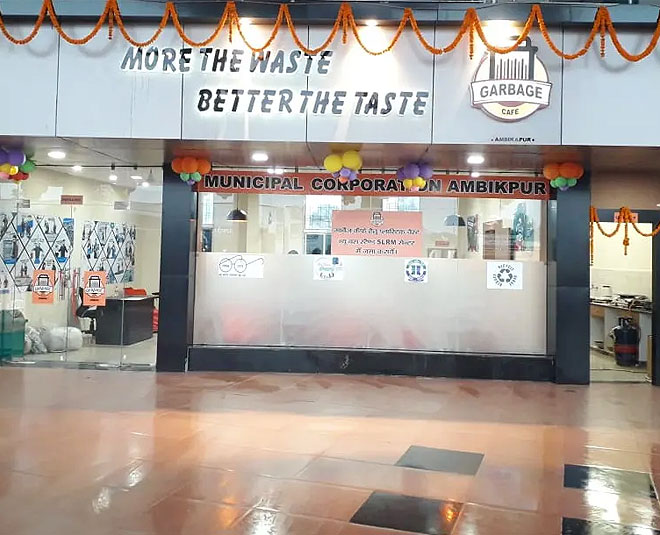 Il primo Garbage Café ha aperto nel 2019 ad Ambikapur, nello stato indiano del Chhattisgarh, ed è parte di un piano municipale inserito nel programma nazionale Swachh Bharat Abhiyan (Clean India Mission). Il locale serve circa 20 persone al giorno ed è sostenuto dal bilancio comunale dedicato alla sanificazione urbana.