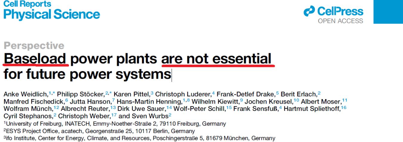 La Cina da sola ha installato qualcosa come 256 GW di fotovoltaico solo nei primi sei mesi del 2025, più di quanto abbiano mai installato gli USA. Vuol anche dire che considerando un fattore di capacità del 15%, solo questi nuovi impianti costruiti in appena sei mesi daranno circa 330 TWh di energia, un valore paragonabile a tutta la produzione da nucleare cinese (450 TWh annui), con la differenza che il parco reattori cinese è stato costruito in oltre trenta anni, non in sei mesi. Dieci anni fa, la critica principale alle rinnovabili era che non avrebbero mai dato abbastanza energia. Oggi le argomentazioni sono cambiate: qualcuno continua a dire ancora che “serve il nucleare in Italia e in Europa” per garantire il cosiddetto “baseload” o carico di base. Un recente articolo scientifico pubblicato da una ventina di scienziati energetici tedeschi sfata anche questo mito: per avere una produzione stabile e continua in Europa e completamente decarbonizzata (senza emettere CO2) non serve nuovo carico di base, sia che provenga da nucleare, da energia geotermica (una fonte ancora trascurata ma comunque interessantissima) o da fonti fossili con la cattura della CO2 emessa. Nel loro articolo, dal titolo eloquente “Baseload power plants are not essential for future power systems” (Le centrali elettriche che producono “carico di base” o baseload non sono essenziali per le reti elettriche del futuro”, analizzano degli scenari al 2045 e dimostrano che le reti europee possono stare comunque in piedi senza installare nuovo carico di base.